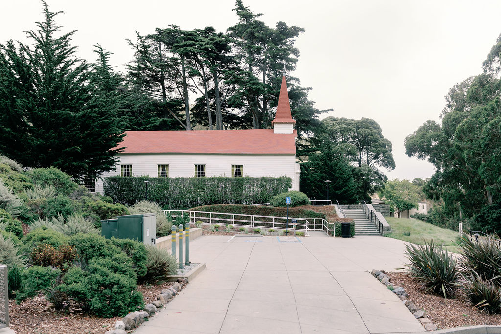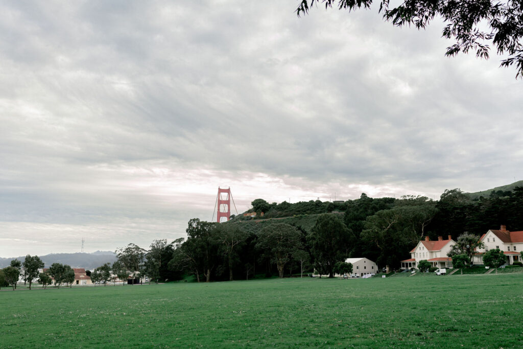 Few venues anywhere in California offer the visual drama of Cavallo Point. The Golden Gate Bridge is not a distant silhouette here, it fills the frame. Whether you’re standing on the terrace during cocktail hour, walking the path between the lodges, or simply pausing during your portraits, the bridge is a constant, breathtaking presence. On clear days, the light on the water is extraordinary.
